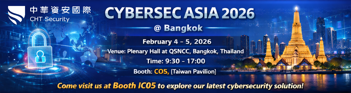 中華資安前進國際,2026 年 2 月 4-5 號將於泰國曼谷 CYBERSEC ASIA 2026 展出最新資安解決方案。