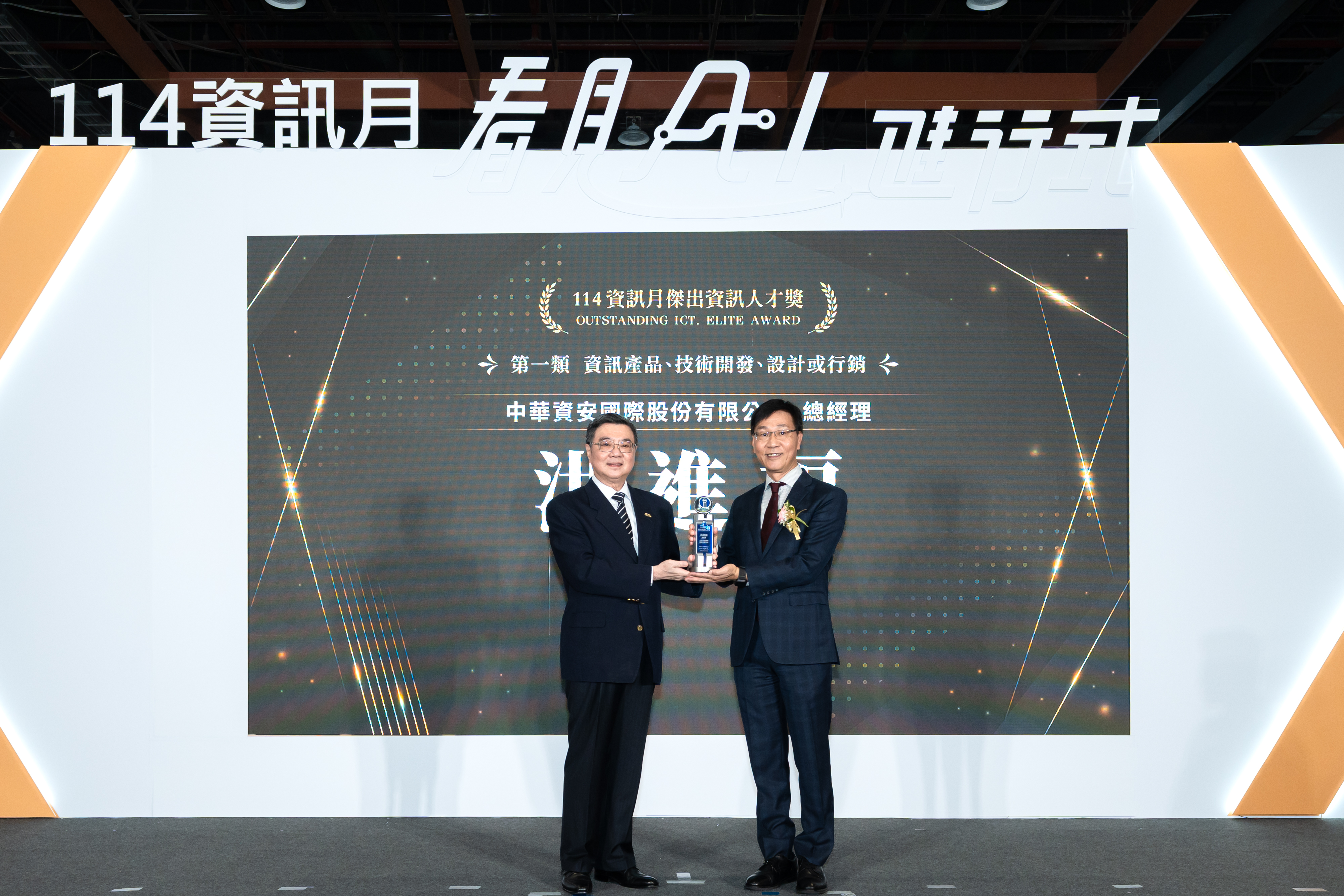 非常榮幸獲頒「114資訊月傑出資訊人才獎」,這份殊榮不僅是對中華資安長期耕耘資安領域的肯定,更是對我與專業團隊的莫大鼓勵,衷心感謝評審委員的認可。