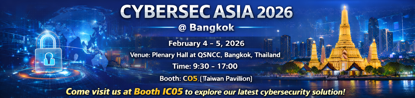 中華資安前進國際,2026 年 2 月 4-5 號將於泰國曼谷 CYBERSEC ASIA 2026 展出最新資安解決方案。